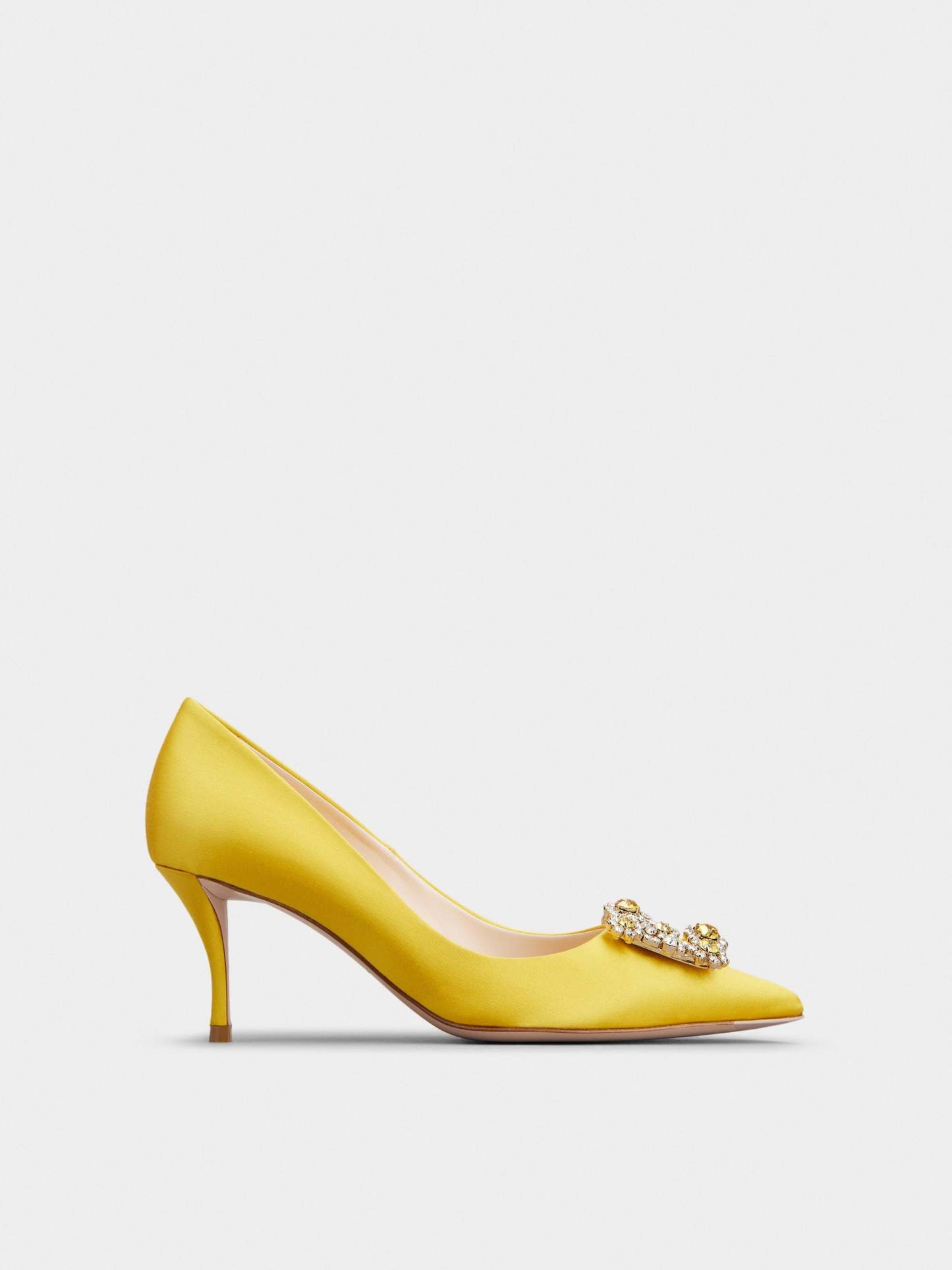 「フラワーストラス」シルク パンプス 65 mm イエロー
