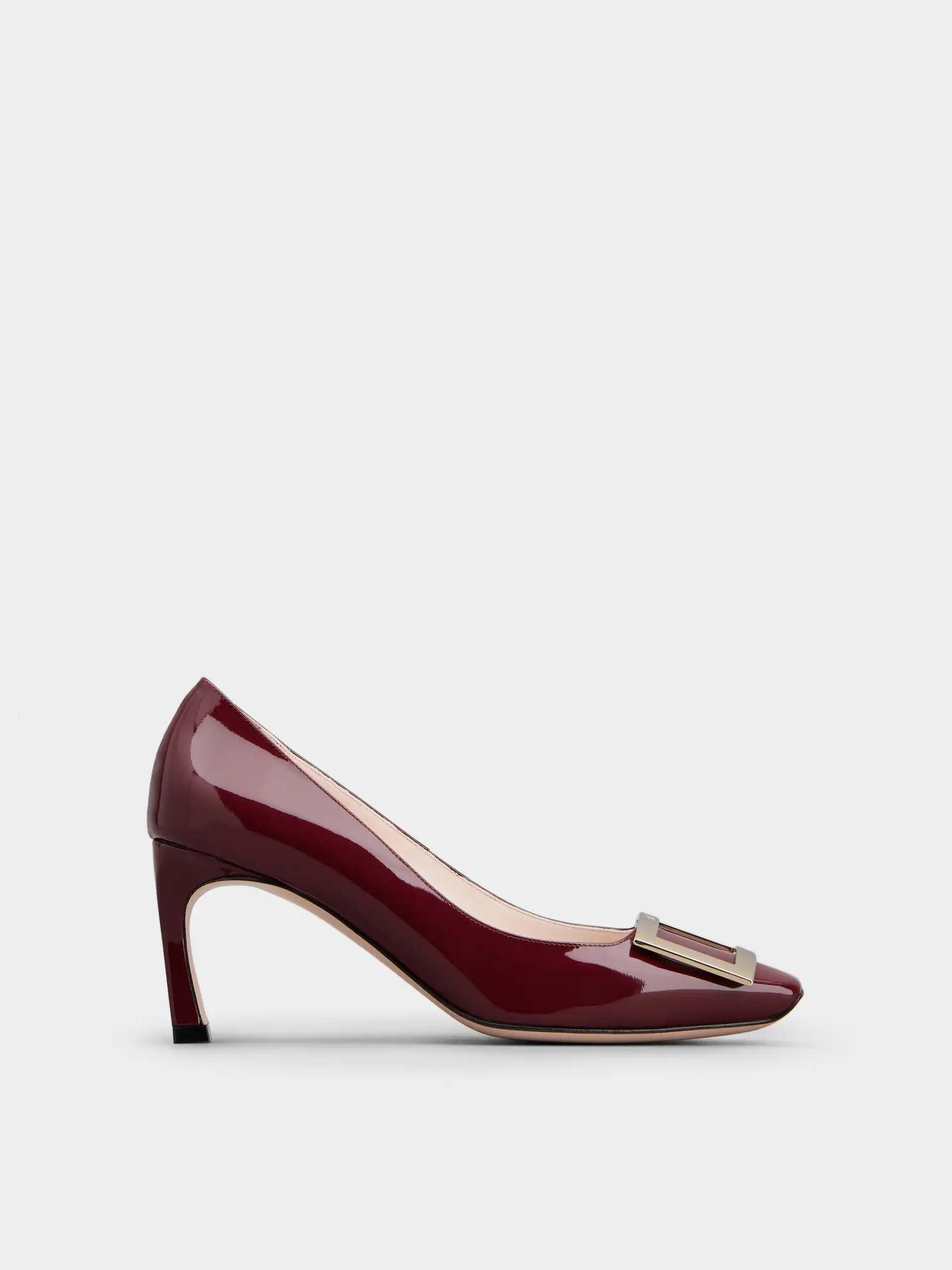 メタルバックルをあしらったパテントレザーのパンプス。クラシックなスタイルと革新的なデザインが融合する、カーブした「トランペット」ヒールが、「ベル ヴィヴィエ」にタイムレスな魅力を与えています。