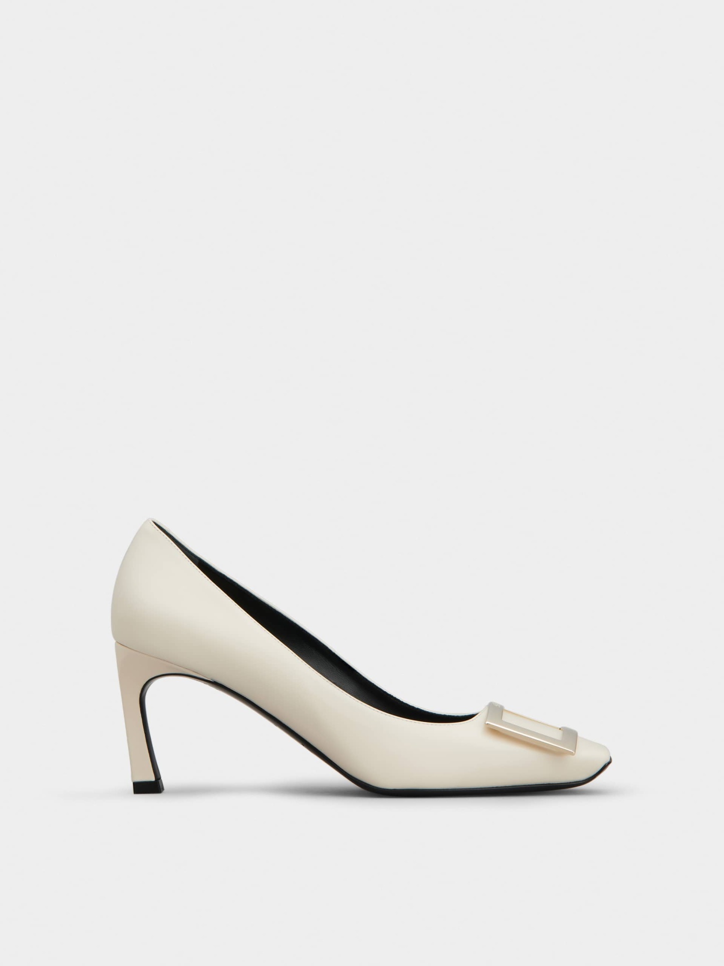 メタルバックルをあしらったレザーのパンプス。クラシックなスタイルと革新的なデザインが融合する、「トランペット」ヒールが、「ベル ヴィヴィエ」にタイムレスな魅力を与えています。