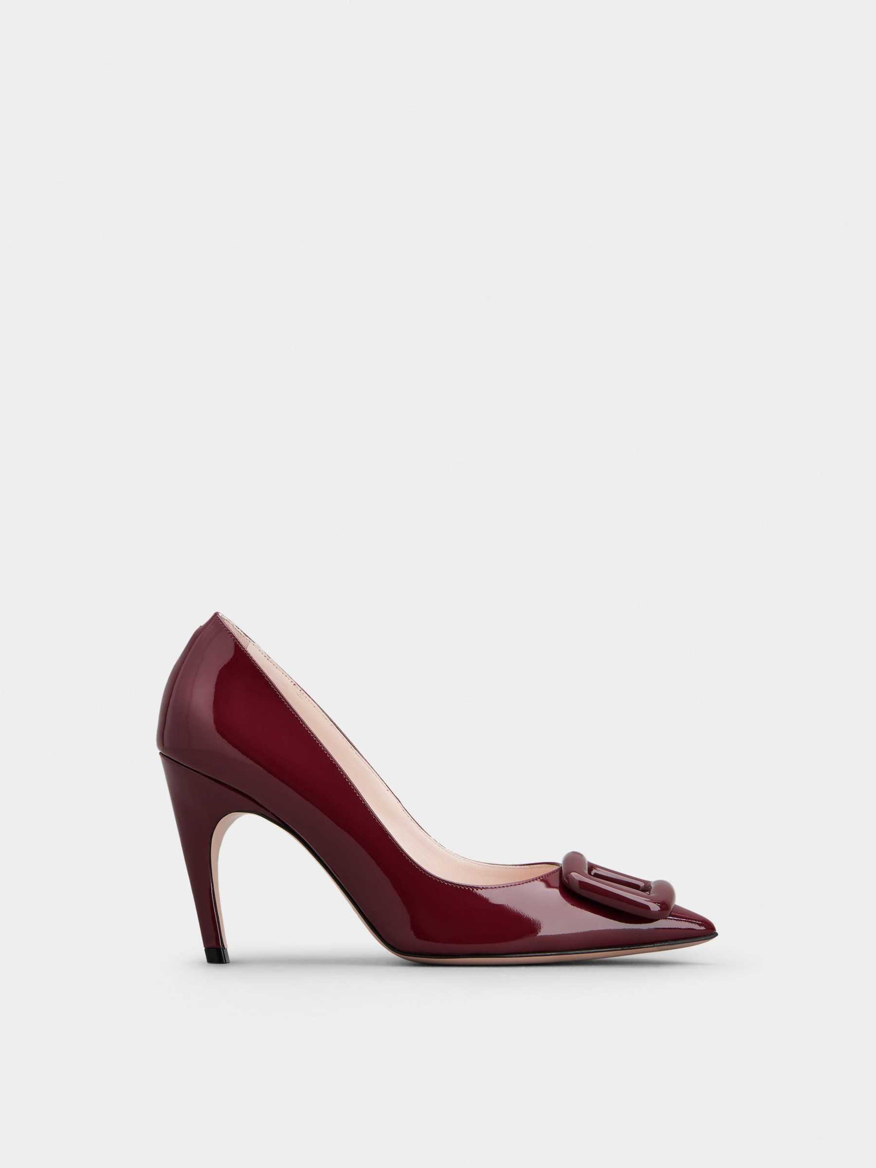 「ヴィヴ ショック」ラッカード バックル パテントレザー パンプス 85 mm ボルドー